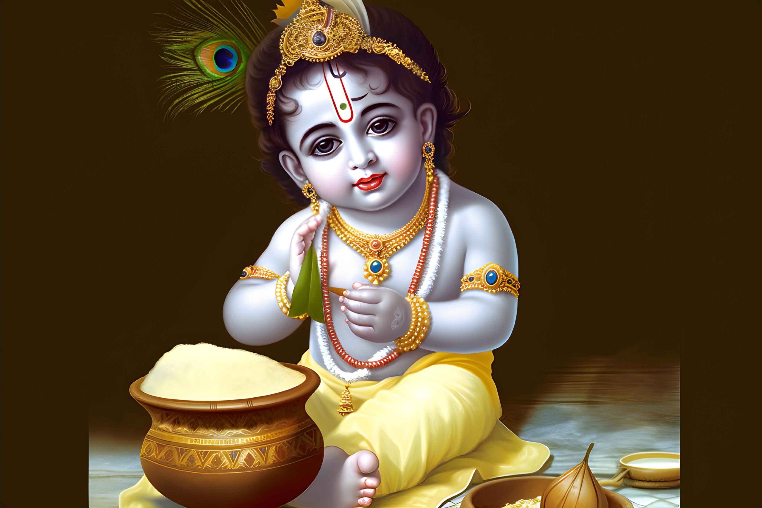 Krishna’s love for butter was legendary. Even though Yashoda, his foster mother, kept her house stocked with fresh pots of butter, Krishna found more joy in sneaking into his neighbors’ homes to steal butter. He would gather his friends, and together, they would form human pyramids to reach the butter pots hanging from the ceiling.