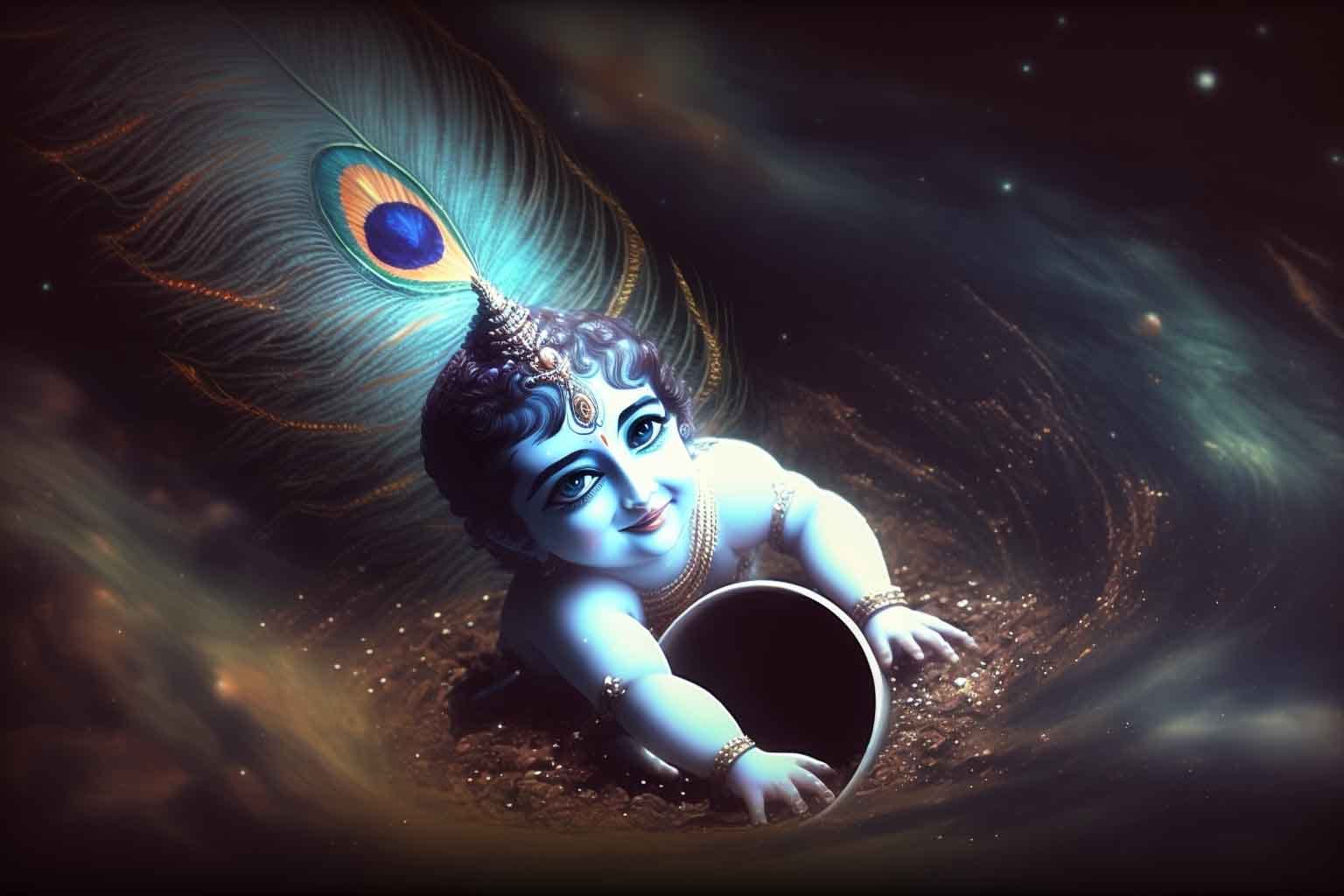 The night of the eighth child’s birth was unlike any other—a moonless sky raged with storms, and thunder shook the earth. In the midst of this chaos, Devaki gave birth to a radiant baby boy. As they looked upon their newborn son, Krishna, a miraculous moment unfolded: the heavy iron doors of their prison swung open, and the guards lay in a deep, enchanted sleep.