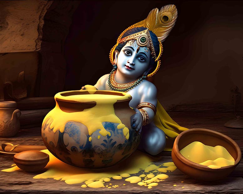 For Krishna, this was just one of many such moments—a reminder that even in the simplest acts, his divine power would shine, protecting those who loved him without their even knowing.